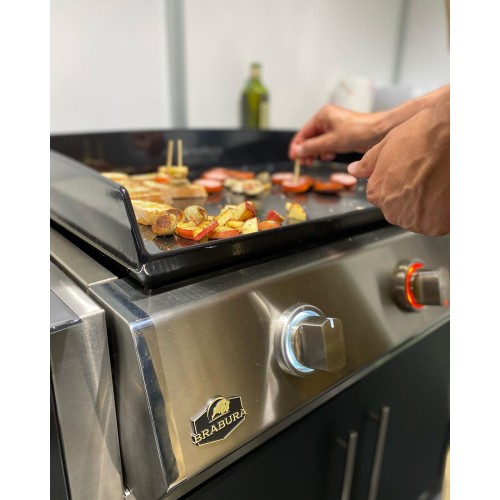 Posuňte své venkovní vaření na zcela novou úroveň. BRABURA vestavná plancha gril L-CLASS 20 Special je elegantní a výkonný gril s plochou deskou, navržený pro rychlé a zdravé grilování. Díky silnostěnné nerezové desce už nemusíte volit mezi pečením masa, křehké zeleniny nebo mořských plodů – vše připravíte na jednom místě. Je ideálním doplňkem pro vaši venkovní kuchyni, ale skvěle poslouží i jako samostatný stolní gril.