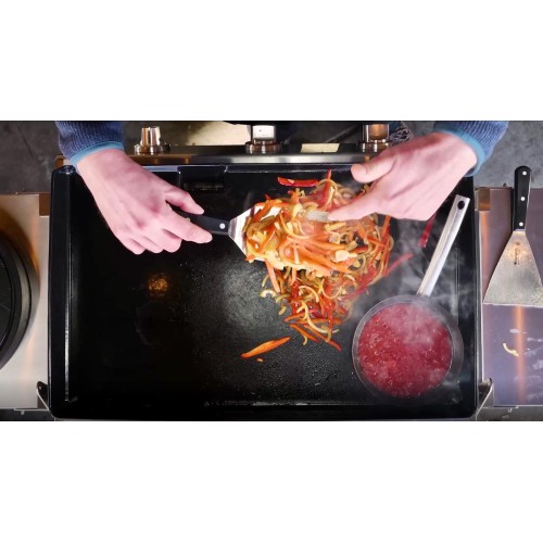 • Masivní nerezová deska (10 mm): Srdcem tohoto grilu je silná 10mm nerezová deska, která rovnoměrně akumuluje a sálá teplo. Získáte tak dokonalé a konzistentní výsledky, ať už připravujete cokoli.