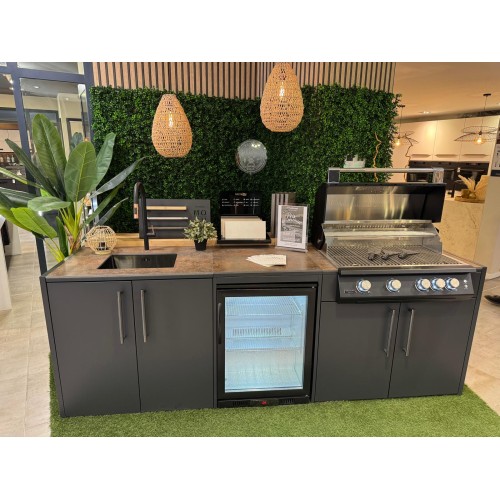 Sestavte si venkovní kuchyni přesně podle svých představ – náš modulární systém vám dává naprostou volnost v uspořádání a konfiguraci. Můžete si vybrat z široké škály komponentů, od různých typů grilů a chladniček, až po dřez s vodovodní baterií a variabilní úložné skříňky. Zvolit si můžete i materiál madel, barvu skříněk, provedení zadní stěny a především odstín pracovní desky z elegantního kamene.