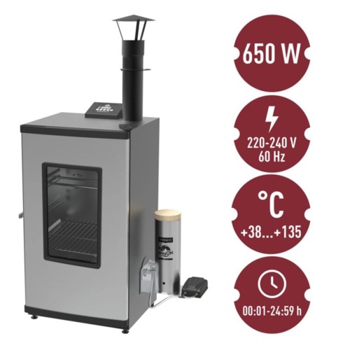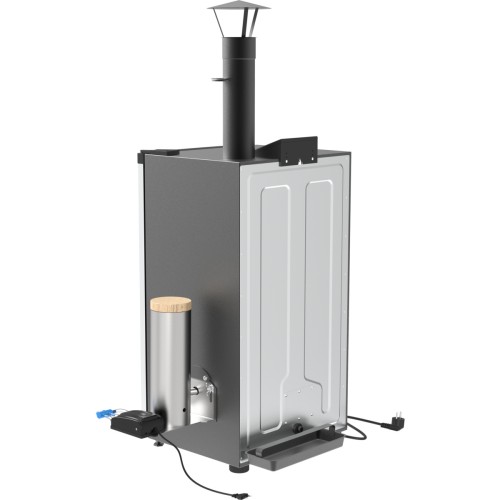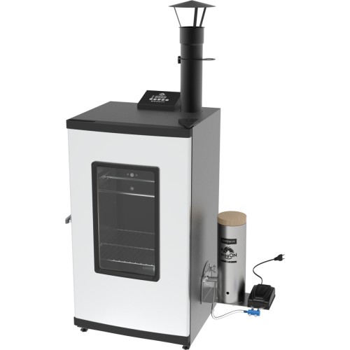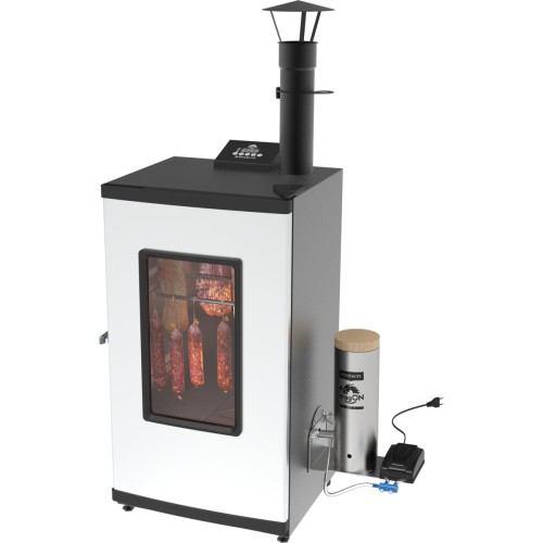 Moderní, elektrická udírna s generátorem kouře dragON Jet 1 a příslušenstvím je univerzální, vysoce kvalitní sada, která zajišťuje komfort používání a vynikající kulinářské efekty. Stačí připojit udírnu, na displeji nastavit teplotu a dobu uzení a spustit generátor kouře. Tato praktická sada je ideální jak pro začátečníky, tak pro ty, kteří již mají s uzením zkušenosti. Je vhodný pro všechny možnosti uzení - studené, teplé i horké, stejně jako pro pražení a sušení. Uzená šunka, sýr nebo losos uzený za studena – tyto a další produkty s jedinečnou vůní a chutí si připravíte sami! Jedinečný generátor kouře na trhu s inovativním, patentovaným designem a účinným elektrickým čerpadlem, které zajišťuje optimální distribuci kouře. Čerpadlo s nastavitelným průtokem kouře je umístěno na základně tak, aby přenášelo své vibrace na válec. Dřevní štěpka díky tomu při spalování nevisí. Speciální adaptér umožňuje snadné a rychlé spojení generátoru kouře s udírnou.
