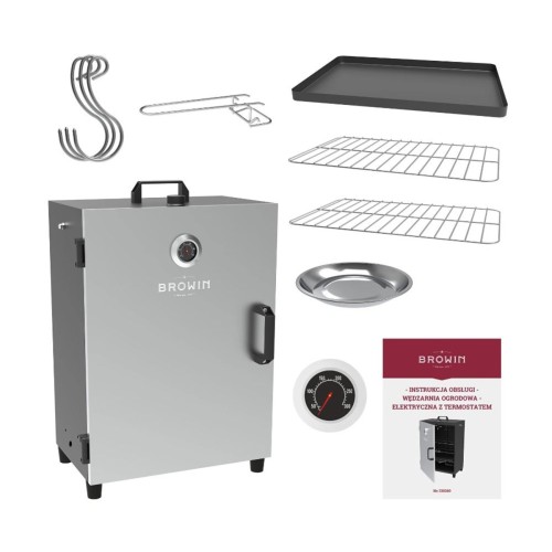 BROWIN Nerezová automatická udírna s termostatem - Elektrická udírna s termostatem - model s vysokým výkonem (topení 1600 W), umožňujícím regulovat teplotu uzení.