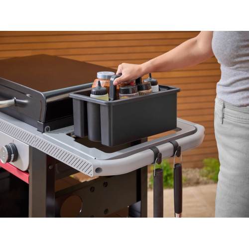 Odborný tip pro vášnivé kuchaře: Povrch planchy Slate je mimořádně odolný a bezpečný pro kovové náčiní. Můžete bez obav obracet, lisovat smash burgery nebo škrábat výpečky špachtlí. Pro maximální efektivitu využijte systém Weber Works – pravý postranní stolek a lišty umožňují nacvaknout nebo vložit praktické příslušenství, jako jsou prkénka, nádoby nebo držáky na utěrky, takže máte vše důležité neustále po ruce.